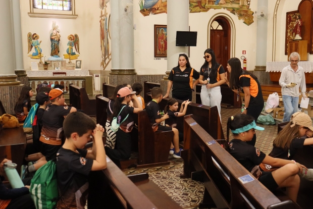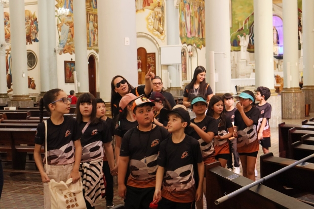 primeira parada, a Igreja Matriz, marco de fundação da nossa cidade. Vimos o