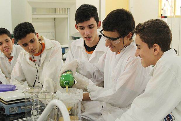 Alunos do 1ª série do Ensino Médio (EM) do Curso G9 participaram de oficina de criação de sabão no Laboratório de Química da Universidade Federal de Itajubá (Unifei). A atividade, em 30 de maio, fez parte do projeto interdisciplinar de Ciências Naturais.