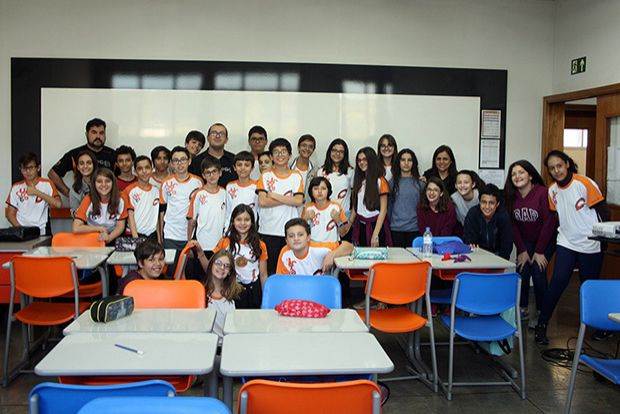 Durante a atividade, os alunos são divididos em equipes: cada grupo é composto por um integrante de cada série do Ensino Fundamental II (EF II) e deve resolver os exercícios propostos pelos professores. Este ano, todos os professores de Exatas do EF II participaram do evento.