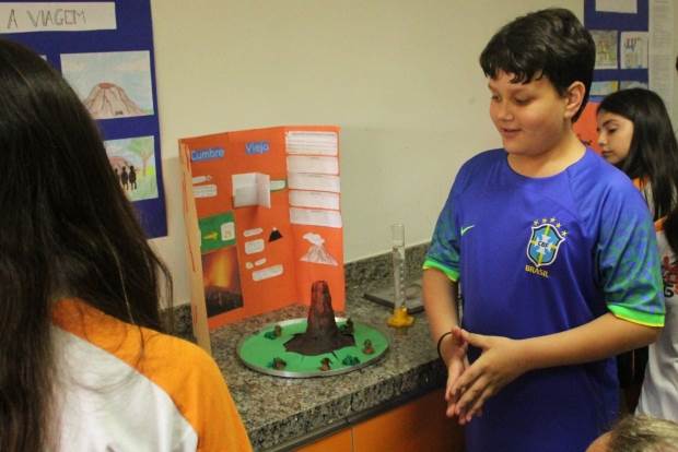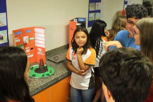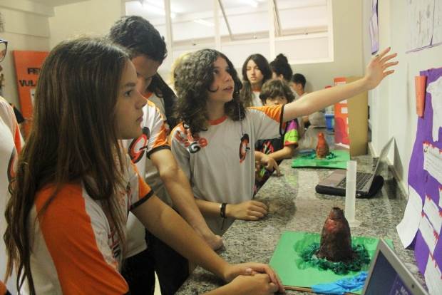 evento, os estudantes apresentaram suas aventuras e modelos de vulcão. Para