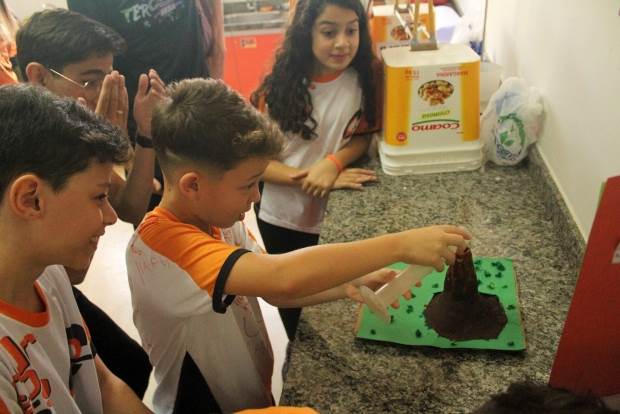 escolar. Puderam simular uma erupção e apresentar a conclusão do experimento