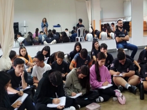 Durante o encontro, os alunos