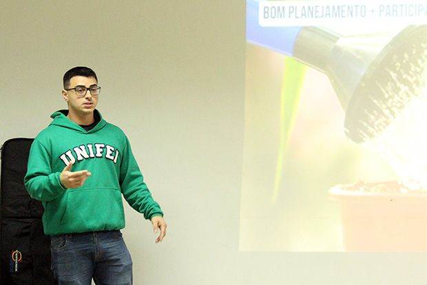 Para complementar os estudos, um grupo da Unifei foi convidado para ministrar uma palestra sobre Planejamento Urbano – Arborização. A equipe é formada por alunos do curso de Engenharia Ambiental e realiza um projeto de arborização no Bairro Nossa Senhora da Agonia e arredores.