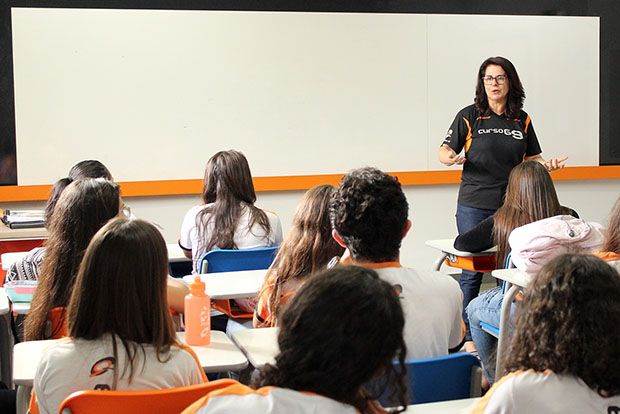 Coordenadora apresenta aos alunos...