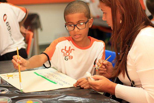 Outra atividade em homenagem às mães foi “Oficina de Confecção: Presente das Mães”, que envolveu os alunos da Educação Infantil e do Ensino Fundamental I. Durante a oficina, as mães fizeram a pintura de almofadas junto de seus filhos, como forma de criarem, em conjunto, o presente de Dia das Mães.