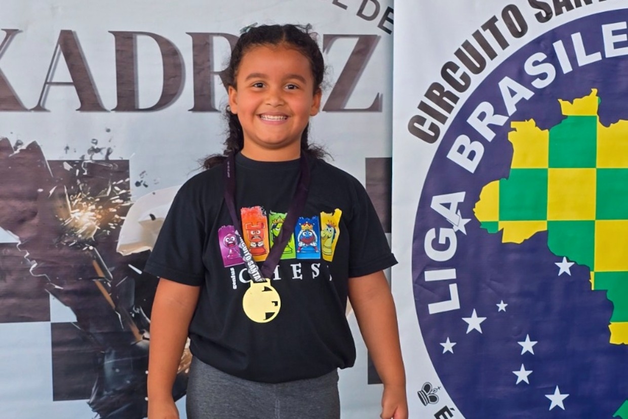 A equipe do Curso G9 brilhou na primeira etapa do Circuito Santarritense de Xadrez 2026, no último sábado (14/03). O evento, que reuniu mais de 70 atletas da região, teve o apoio da Prefeitura Municipal de Santa Rita do Sapucaí e da Escola Estadual Sinhá Moreira. O Curso G9 foi representado por sete atletas, com destaque para a aluna Manuela Pereira, campeãs em sua categoria.