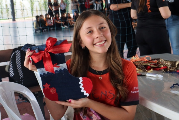 material foi transformado em porta traços, capa de caderno, botas de enfeite natalino e também criaram