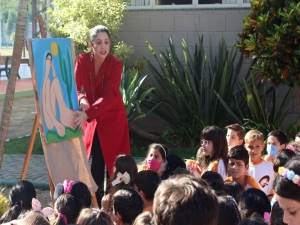 Amaral, representada pela professora Bruna; os alunos conheceram uma das