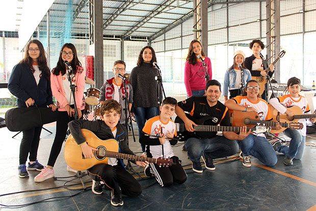 Alunos da Oficina de Música participaram da segunda edição do Intervalo Musical 2019, com a apresentação de quatro músicas, na manhã de 31 de maio. O Intervalo Musical é uma atividade que tem como objetivo desenvolver e potencializar as habilidades artísticas dos alunos e proporcionar um momento de descontração entre os períodos de aula.