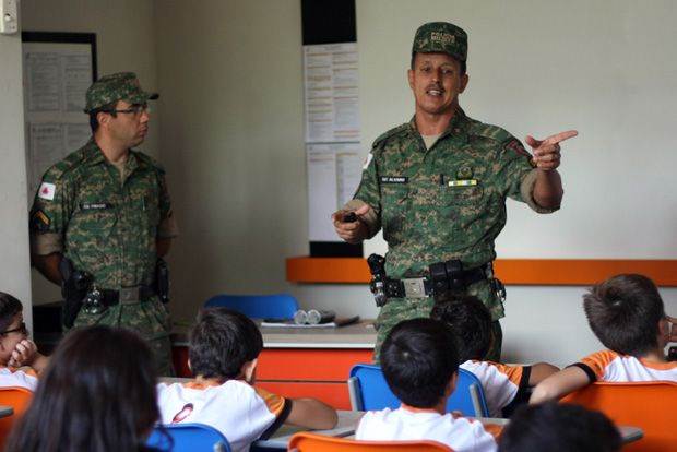 Sargento Álvaro ressaltou a importância de tratar desses assuntos com os alunos do Fundamental I. “É muito importante falar desse tema para as crianças, pois a educação é a base de tudo”, disse. “Não são as multas que vão resolver os problemas que os seres humanos criam no meio ambiente, mas sim a conscientização. É fundamental despertar nas crianças os valores de respeito e cuidado com o meio ambiente”, completou.