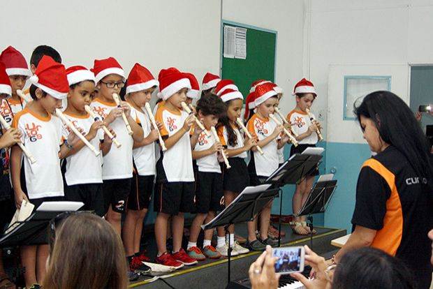 Apresentações dos alunos do Ensino Fundamental l do Curso G9 para os pais e familiares marcaram o encerramento das atividades extras neste ano letivo. Foram realizadas aulas abertas, de 30 de novembro a 4 de dezembro, das turmas de Flauta, Educação Motora e Ginástica Rítmica. O objetivo da iniciativa é valorizar o progresso e desenvolvimento do aluno durante o ano, aproximar a família da escola e do aprendizado dos filhos e mostrar os resultados da proposta pedagógica da escola.