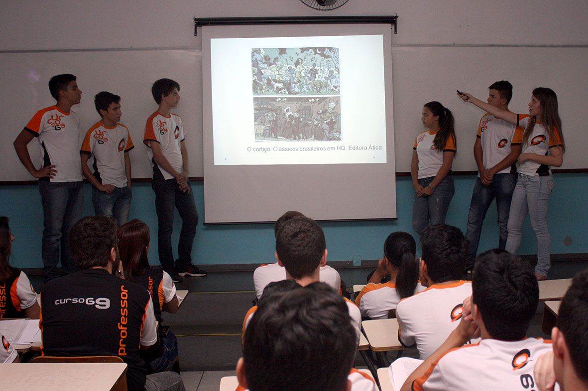 Em uma sequência de apresentações, os alunos do 2º ano do Ensino Médio do Curso G9 analisaram duas obras expoentes do naturalismo: o filme “Germinal” e o livro “O Cortiço”. O trabalho “Intertextual e interdisciplinar” trouxe para a sala de aula, leitura e reflexão sobre sociedade e seus conflitos. Entre a análise de uma greve de mineiros por melhores condições de trabalho no norte da França e a exploração dos moradores dos cortiços cariocas, ambos no século XIX, foi evidenciado que os problemas evoluíram, mas ainda são atuais.